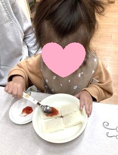 2歳児クラスでは食育の一環としておやつ作りをしました🥪✨